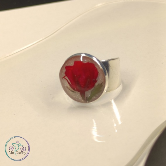 Pierścionek z prawdziwym kwiatem róży – wyrazisty i romantyczny