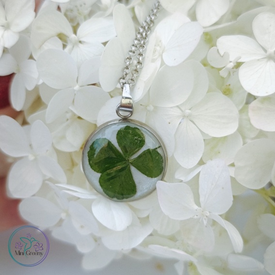 ·         Materiał: Prawdziwa czterolistna koniczyna, żywica, stal szlachetna